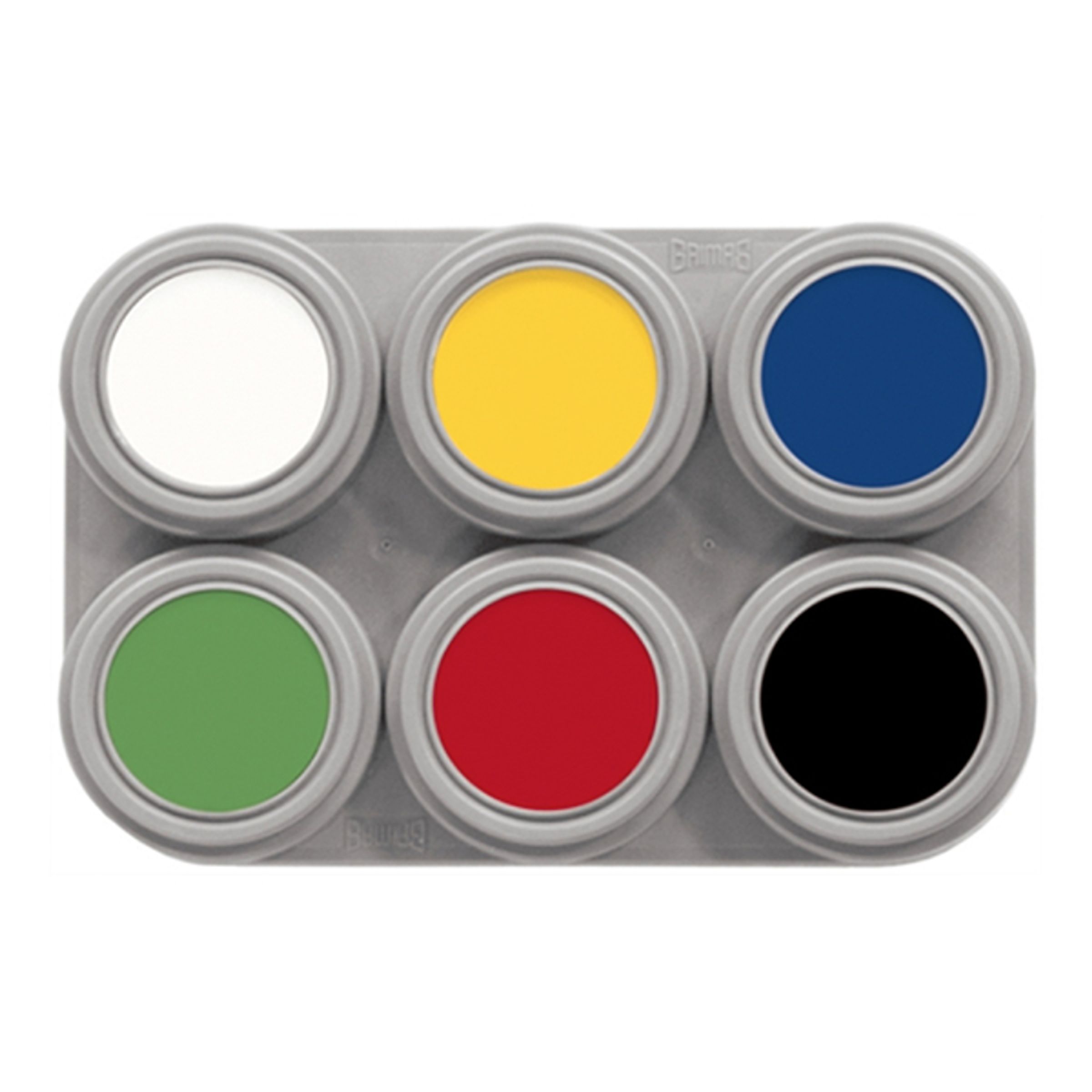 Här har vi en praktisk liten pallet som målar dig i alla världens färger. Paletten innehåller sex stycken vattenlösliga färger och passar att använda till halloween-, clown- och maskeradfesten!