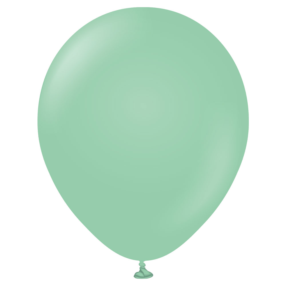 Gröna Latexballonger Mint Green omfattar 30 cm stora, mintgröna latexballonger som är biologiskt nedbrytbara. Blås upp ballongerna med helium eller luft.