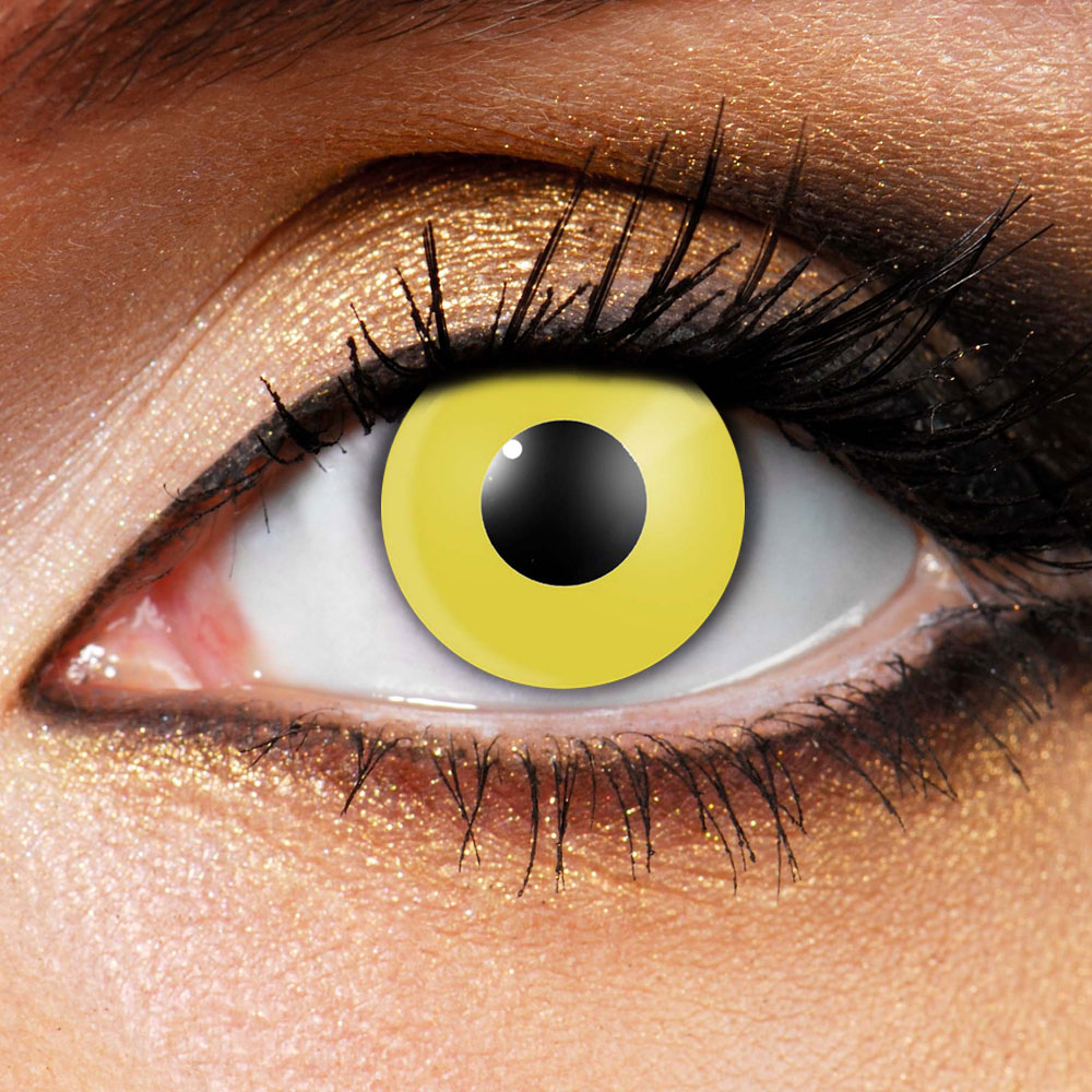 Färgade Linser Werewolf innehåller ett par gula linser som kan användas upp till en vecka. Linserna är i storlek one size och passar de flesta.