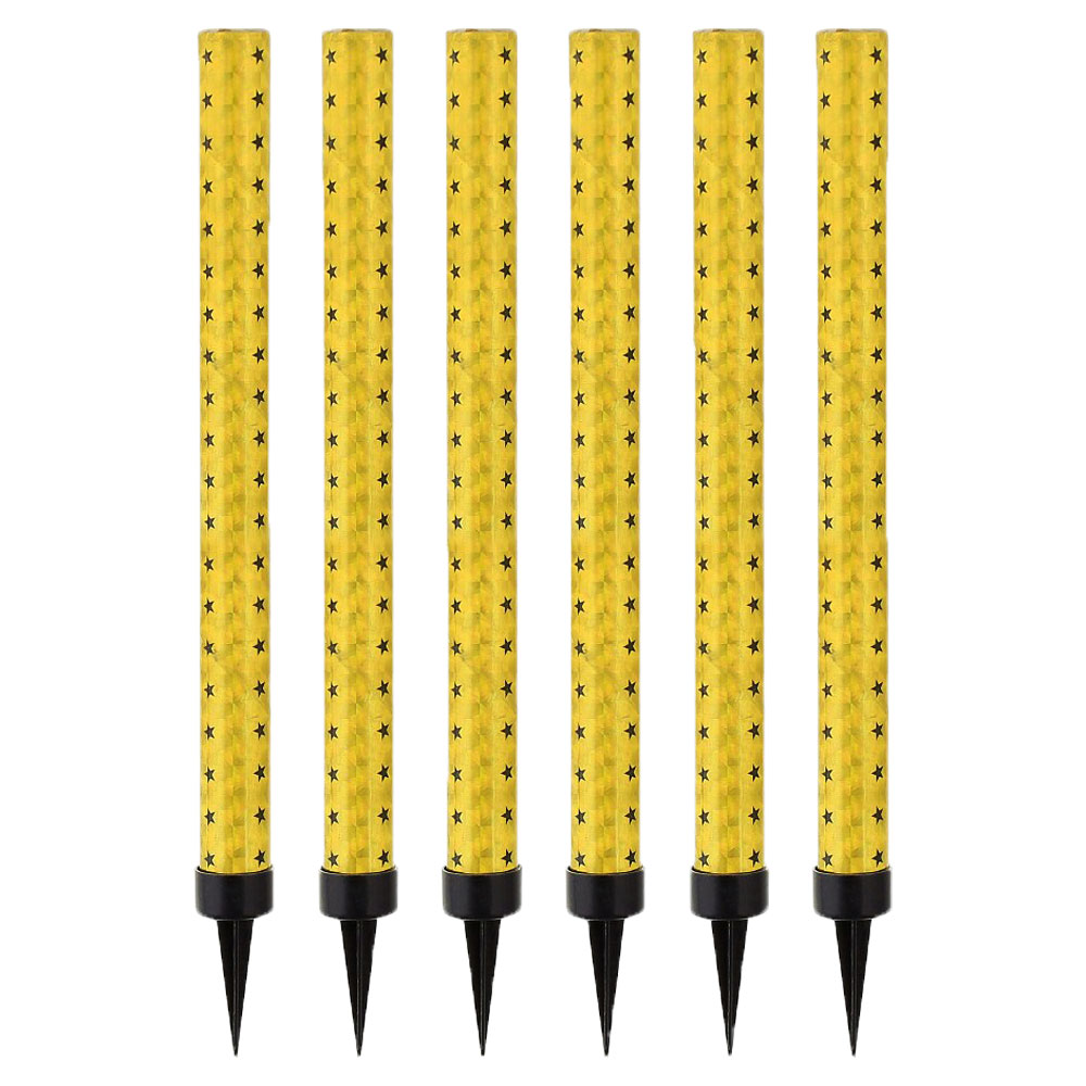 – 6 st guldiga isfacklor med stjärnmotiv.