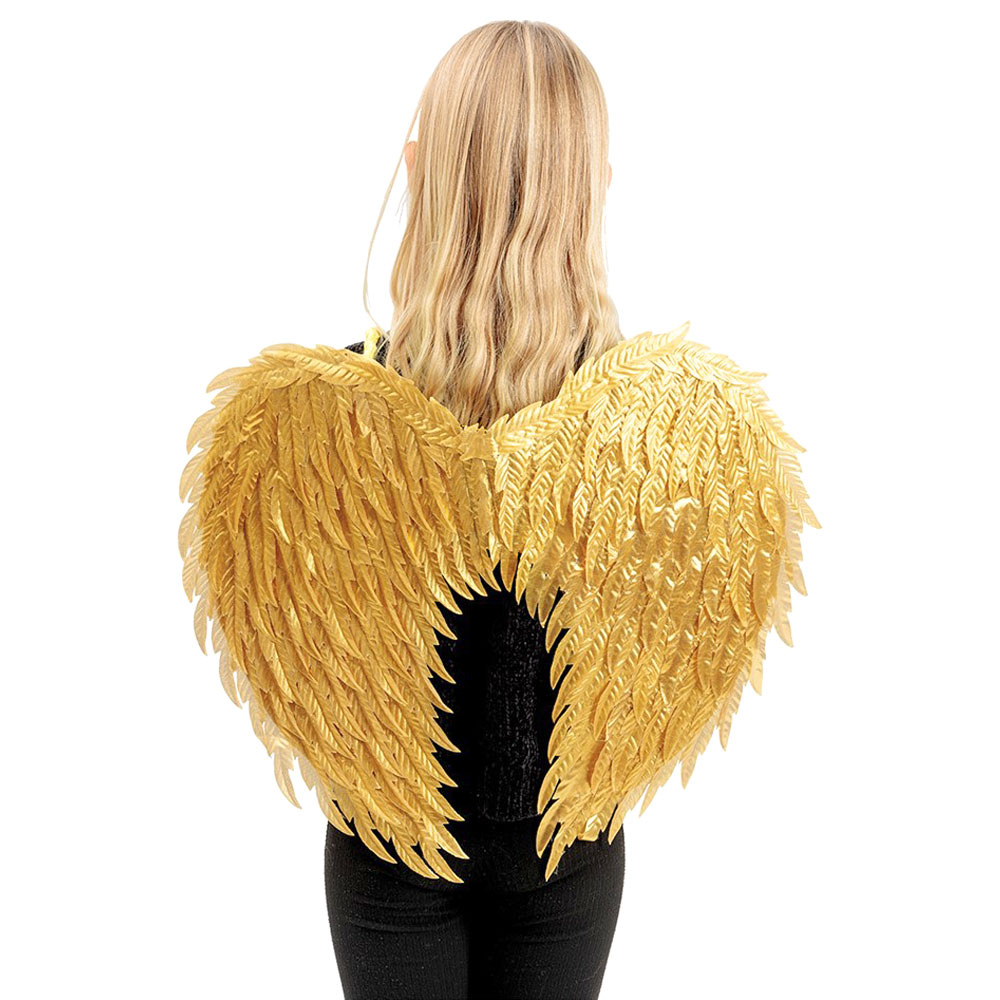 – Vingar i guldfärg med fejkfjädrar.