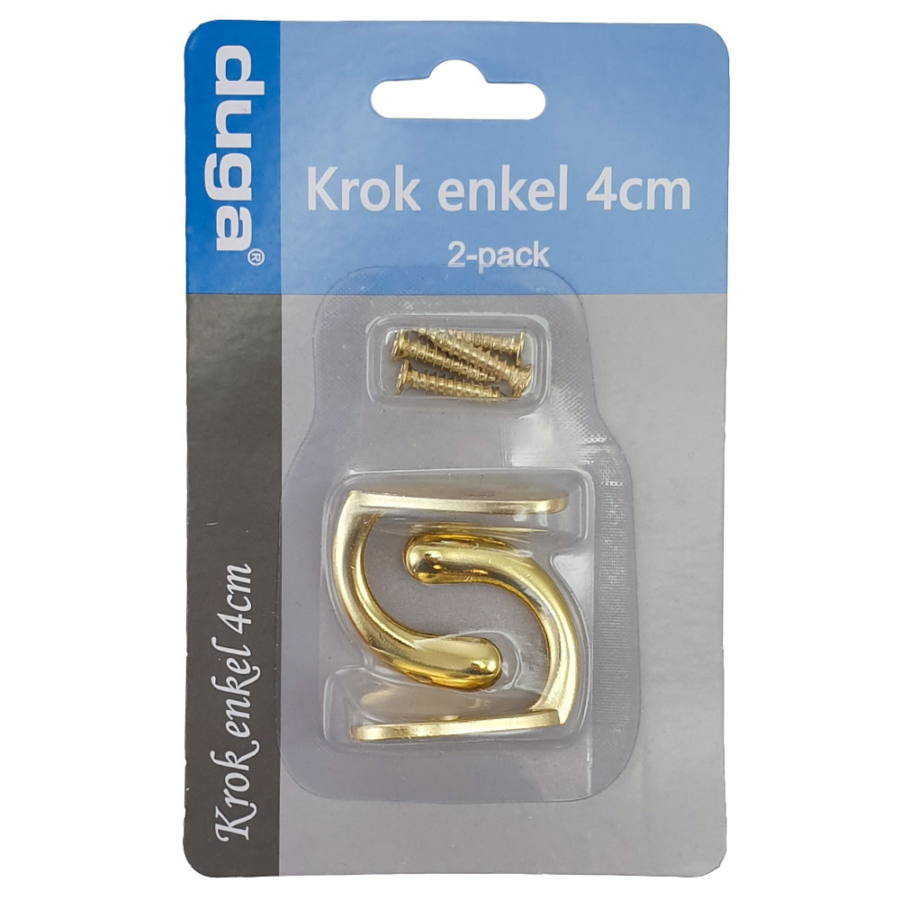Guldkrokar omfattar 2 stycken guldiga metall-krokar som är ca 4 cm långa. Guldiga skruvar för uppsättning medföljer.