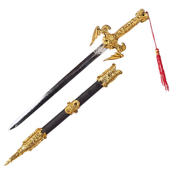 Guldsvärd Assassination är tillverkad av plast och omfattar ett silverfärgat svärd med detaljrika kinesiska motiv och ett rött snöre hängande nedtill. Det medföljer även en matchande skida i svart/guldfärgad design.