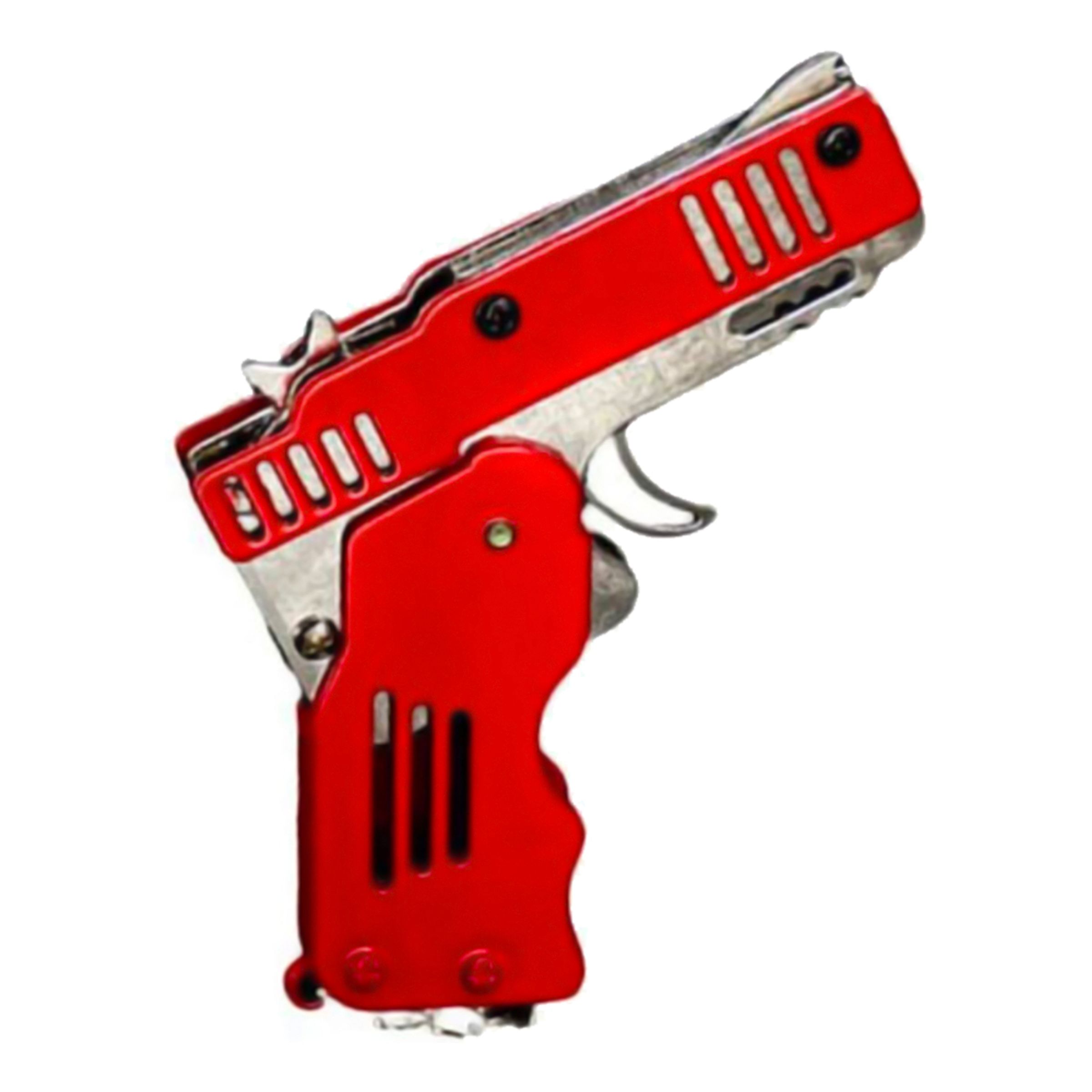 Gummisnoddspilstol Hopfällbar är en helkul liten leksakspistol som skjuter iväg gummisnoddar. Bara att fästa gummibandet ovanpå och tryck in avtryckaren så flyger den iväg! Pistolen finns i färgerna röd, svart, grön och blå. En påse med gummisnoddar medföljer.