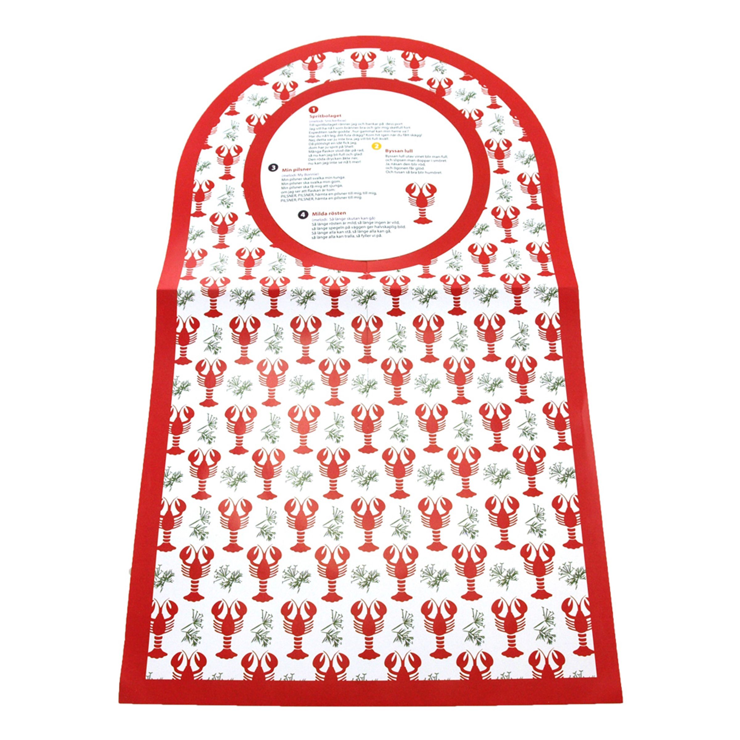 En av den mest svenska tradition som finns är den gamla, goda kräftskivan. Och vad vore väl en kräfskiva utan sina snapsvisor? Den här hakklappen hjälper dig både mot rinnande saft från kräftorna, samtidigt som den har ett antal snapsvisor tryckt på sig! En riktigt multifunktionell hakklapp med andra ord – ett måste för varje kräftskiva.