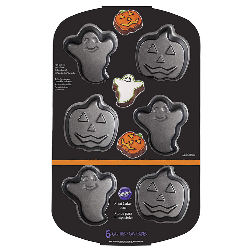 Halloween Kakform består av en non-stick bakform som har plats för 6 stycken Halloween kakor i form av spöken och Halloween pumpor. Formen är diskmaskinssäker.