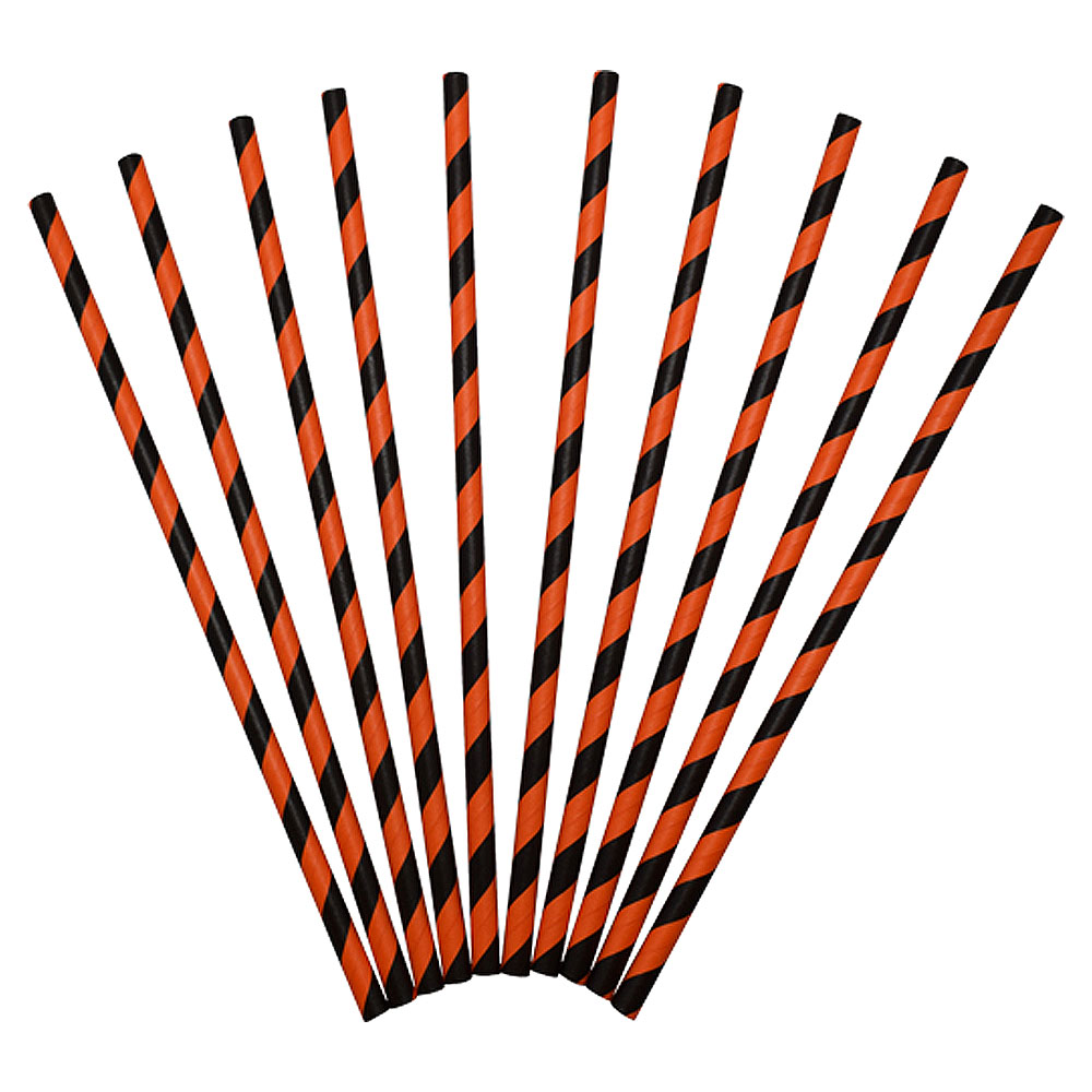 – Randiga sugrör i orange och svart.