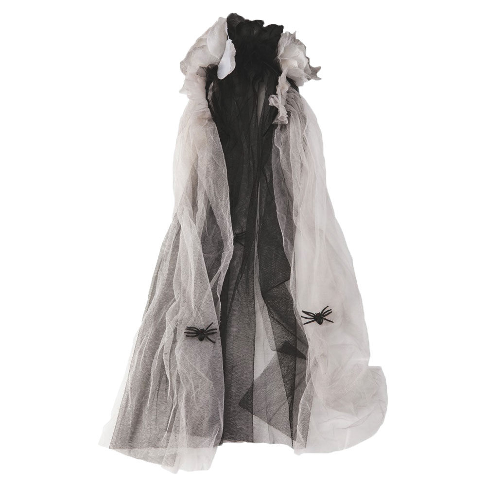 Halloweendiadem med Slöja omfattar ett halloweendiadem med blommor, slöja och spindlar. Diademet är tillverkat av plast och polyester och passar vuxna.
