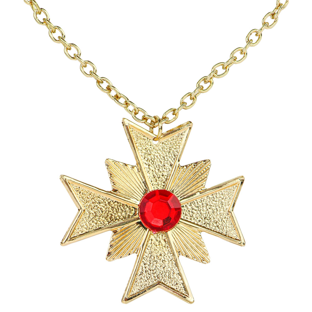 Halsband med Röd Ädelsten omfattar ett guldigt halsband med en röd ädelsten. Halsbandet passar vuxna och är tillverkat av plast och stål.