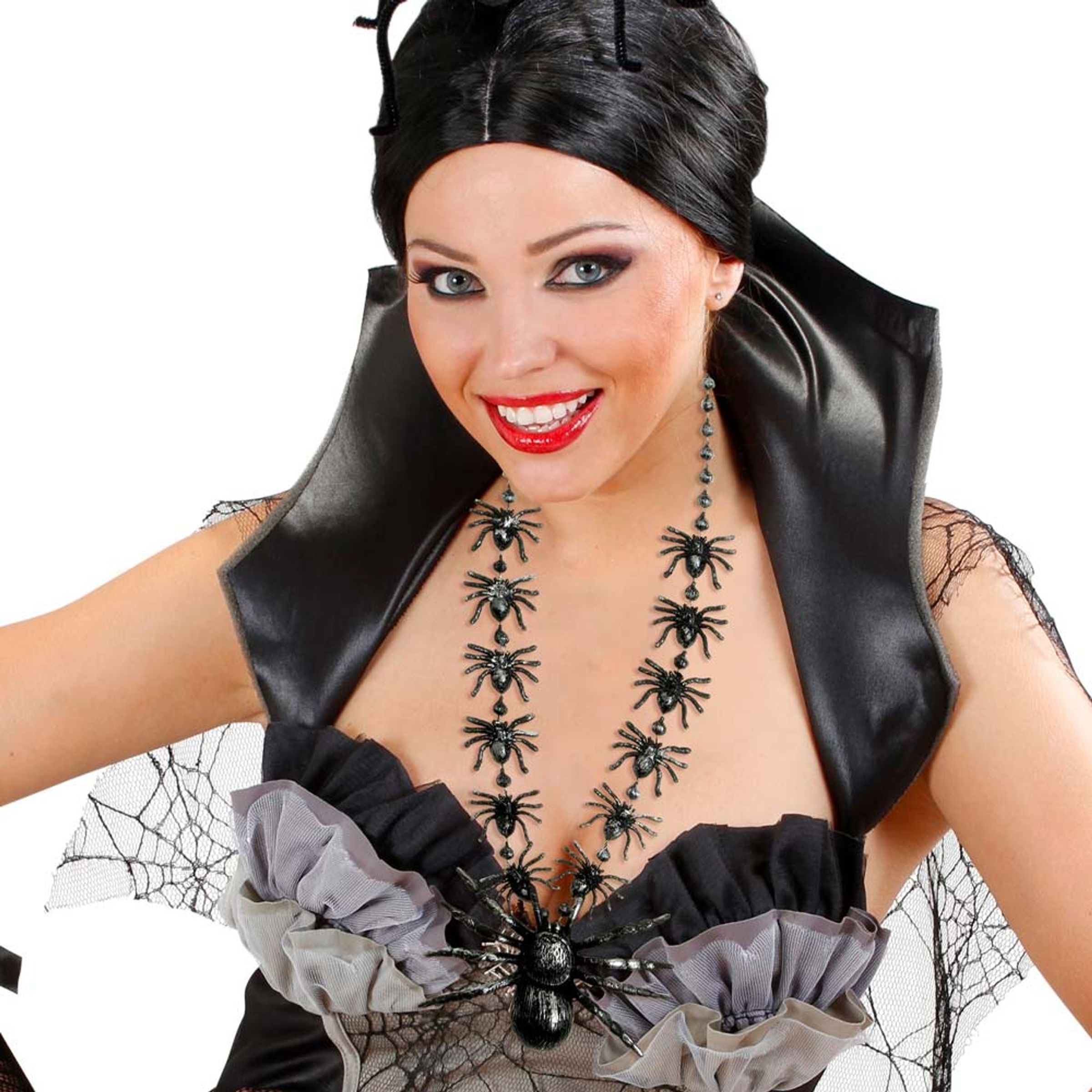 Om du vill vara säker på att ingen ska befinna sig på mindre än 1 meters avstånd från dig så är det detta halsband du ska ha. Med dessa läskiga spindlarna som omringar din hals kommer ingen våga vara nära dig på festen!