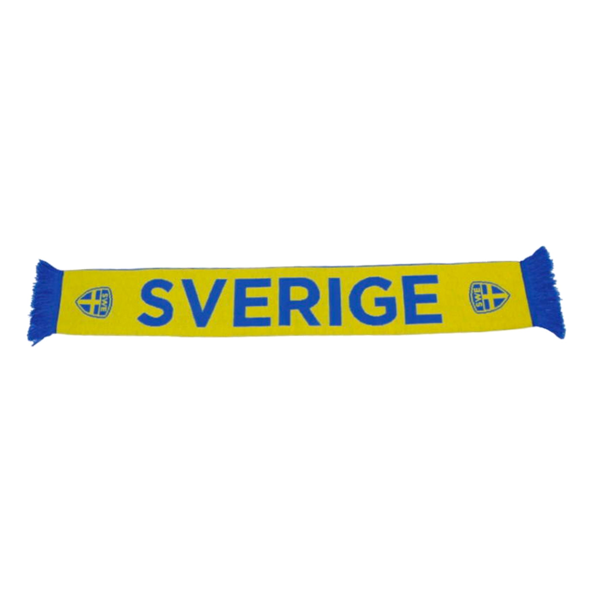 Halsduk Sverige är en mäktig dubbelsidig halsduk i gult och blått med sköldar och "Sverige" tryckt på båda sidor. Sverigehalsduken är tillverkad i 100% akryl, är ca 140 cm lång och har blåa fransar i båda ändar.