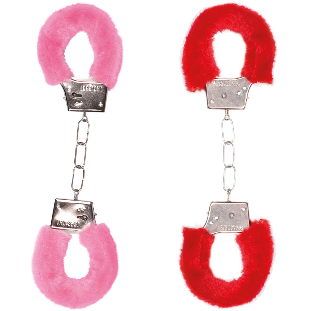 Handklovar med Fluff består av 1st silverfärgade handbojor med dekorativt fluff i rött eller rosa. Med handklovarna ingår det även 2 små nycklar.