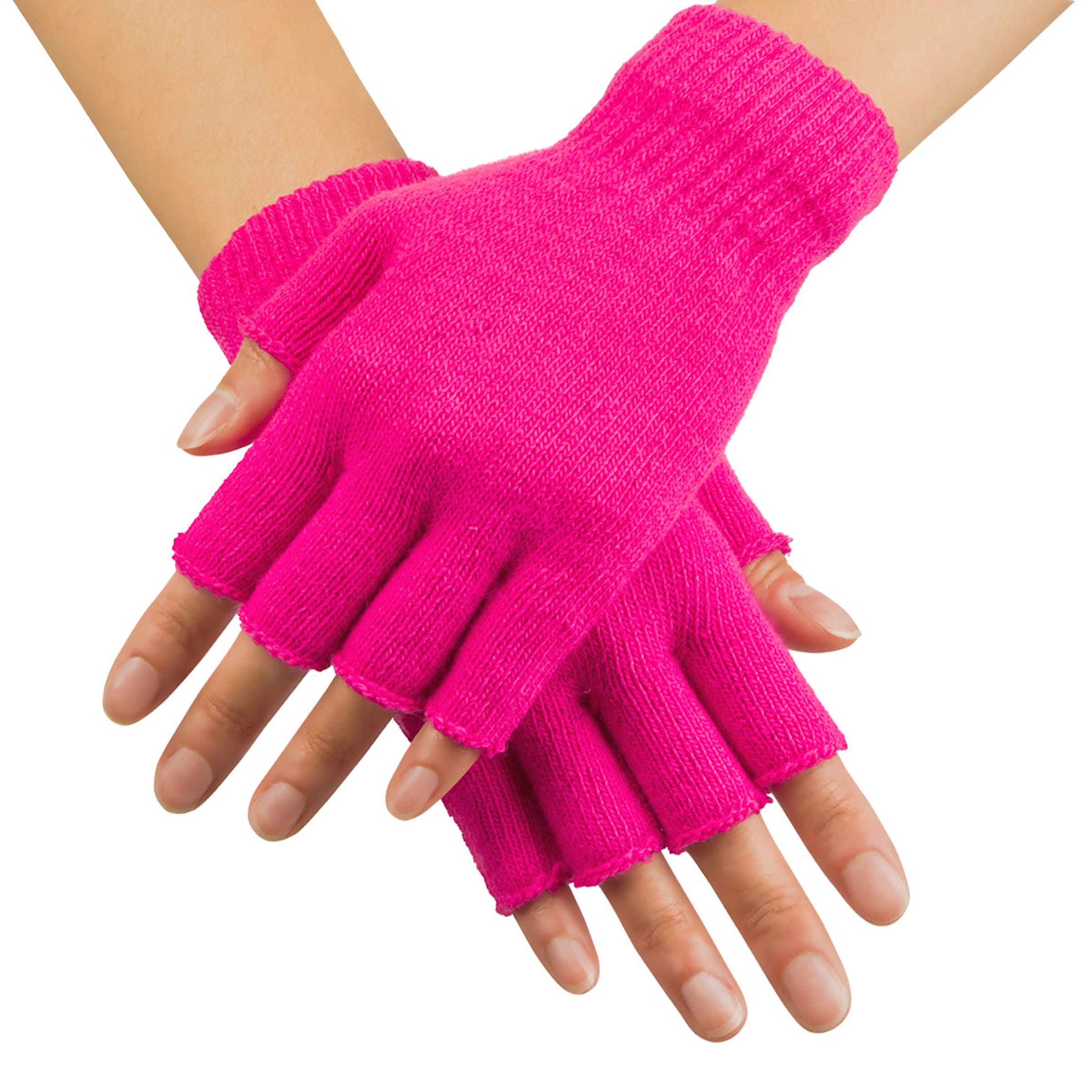 Handskar Fingerlösa Neonrosa är ett par vantar utan fingertoppar. Färgen är en stark, rosa nyans.
