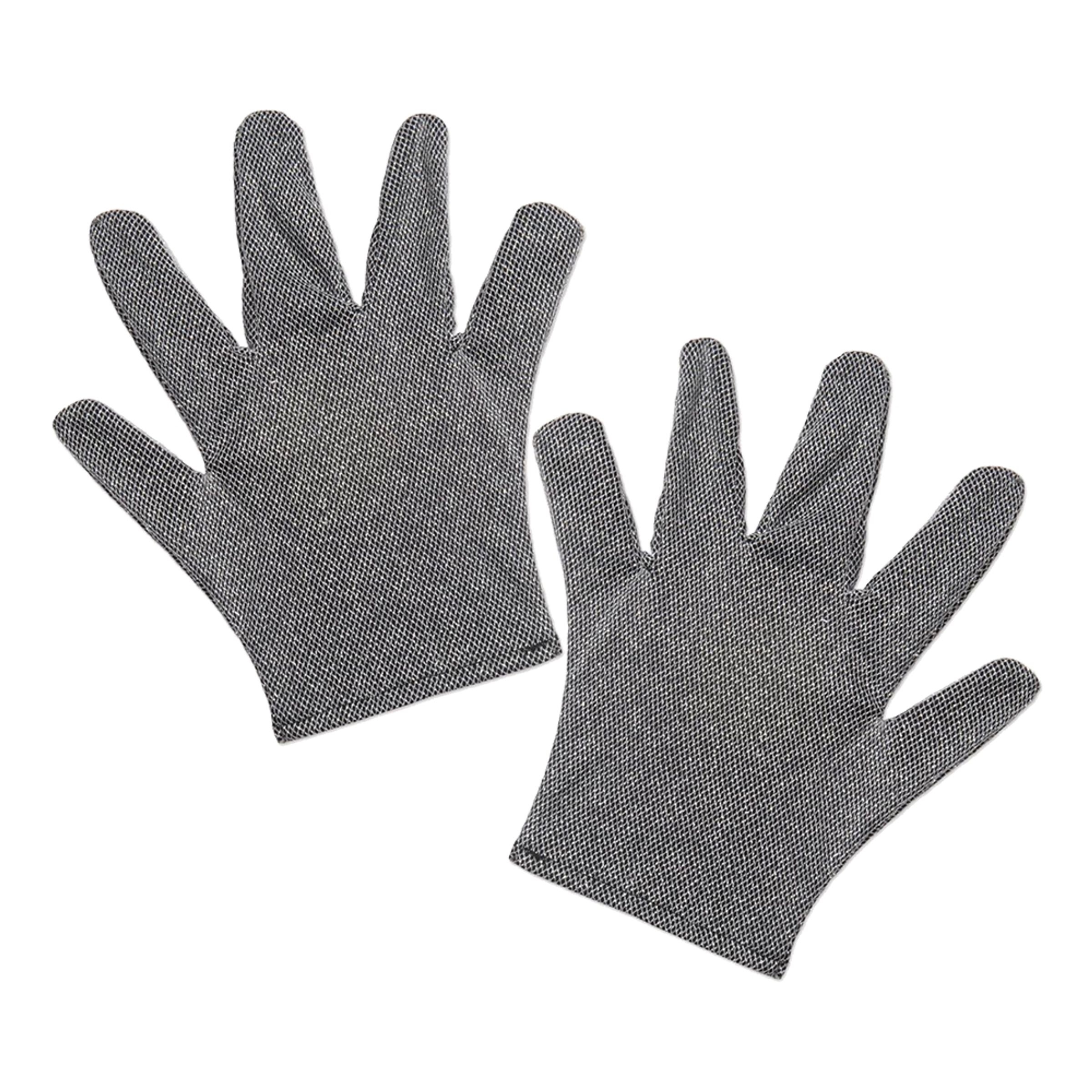 Handskar Medeltida är ett par gråa handskar som ser ut som om de är tillverkade av ringväv. De matchar därför en brynja och blir ett perfekt komplement till riddardräkten.