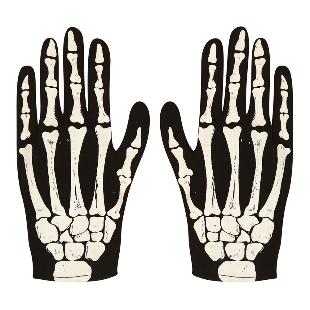 Gör din skelett halloween utklädnad ännu bättre med dessa häftiga skelett handskar för barn! Svarta handskar med vitt skelettmotiv som förvandlar dina händer till läskiga skeletthänder. Ett toppenbra tillbehör till din skelett maskeraddräkt.