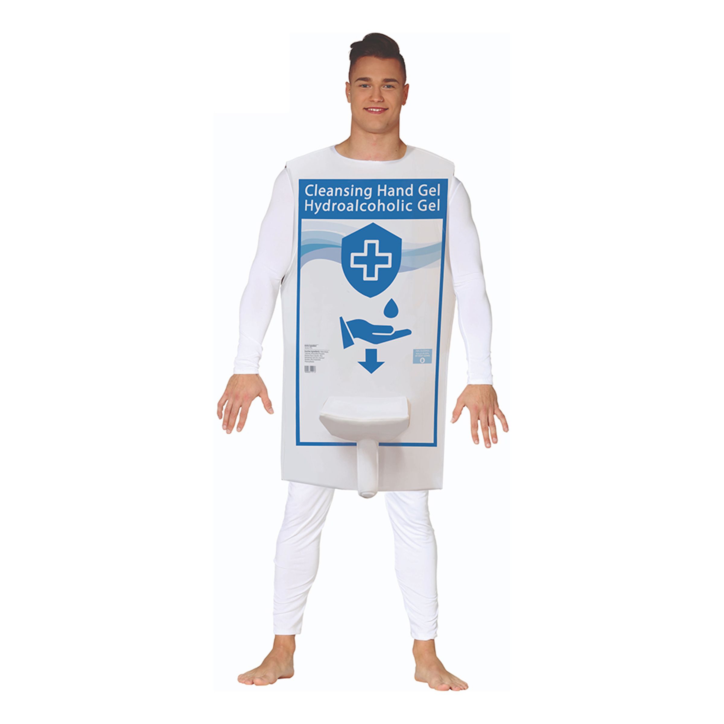 Handsprit Maskeraddräkt är en dräkt föreställande en flaska handsprit – kanske den mest aktuella och respekterade dräkten just nu? Dräkten består av en ärmlös vit överdel med blå text över bröstet som lyder "Cleansing Hand Gel Hydroalcoholic Gel". Under texten finns en utstickande del föreställande en pump. Den perfekta utstyrsel till halloweenfesten!