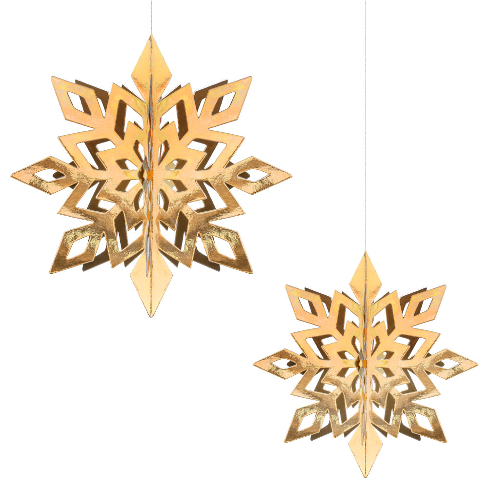 Pynta fint inför jul med dessa tjusigt hängande 3D snöflingor! Guldiga snöflingor i läcker 3D-design som blir en riktigt fin jul-dekoration till både hemmet och den stora julfesten. Häng upp dem i taket eller i fönstret och få genast till ett riktigt stämningshöjande julpynt. Perfekt för alla som drömmer om en riktigt härlig jul!