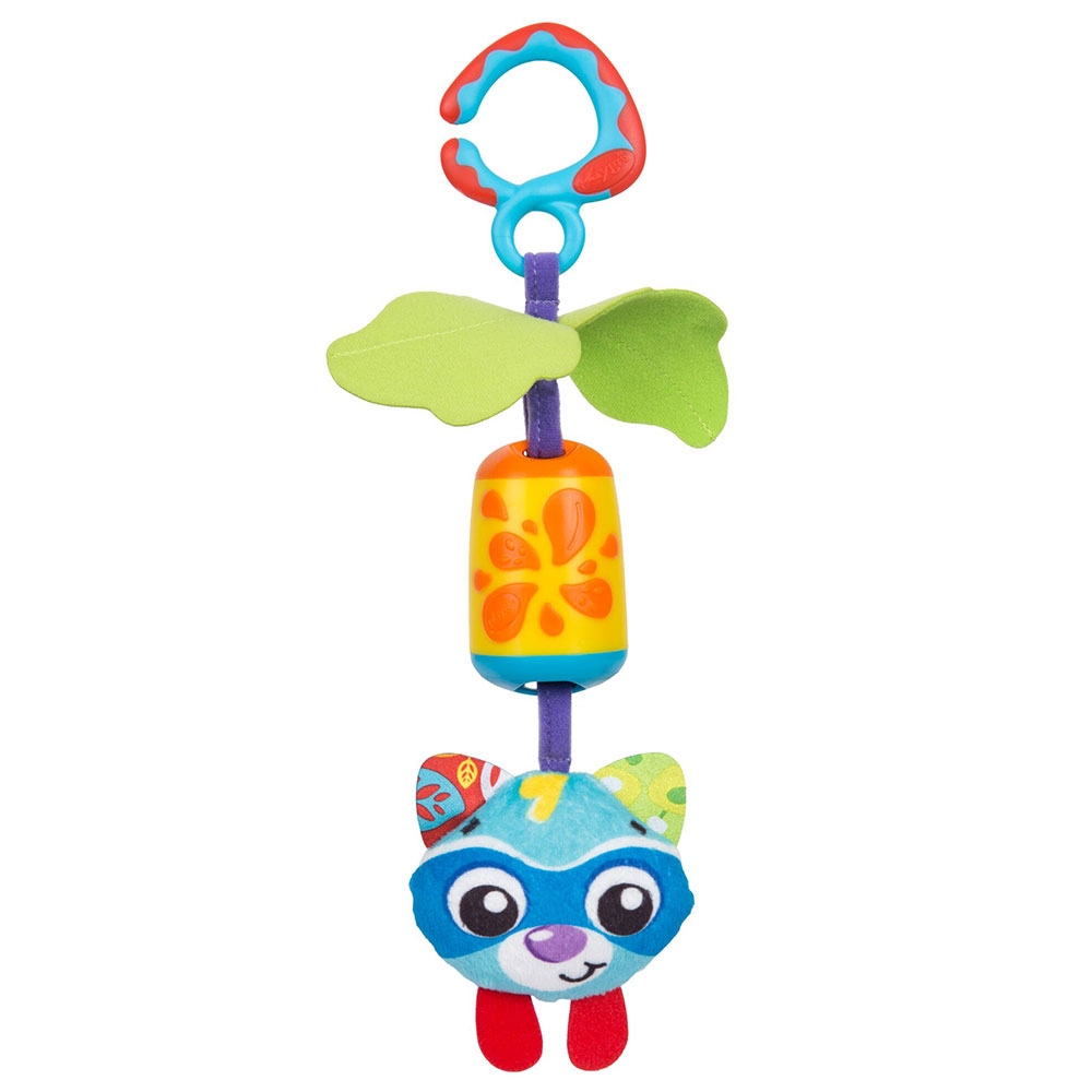 En underhållande bebis kan njuta av sin nya leksak i form av en rolig tvättbjörn som även fungerar som en skallra, perfekt att fästa i barnvagnen eller använda på resan i bilbarnstolen för maximal glädje och säkerhet.