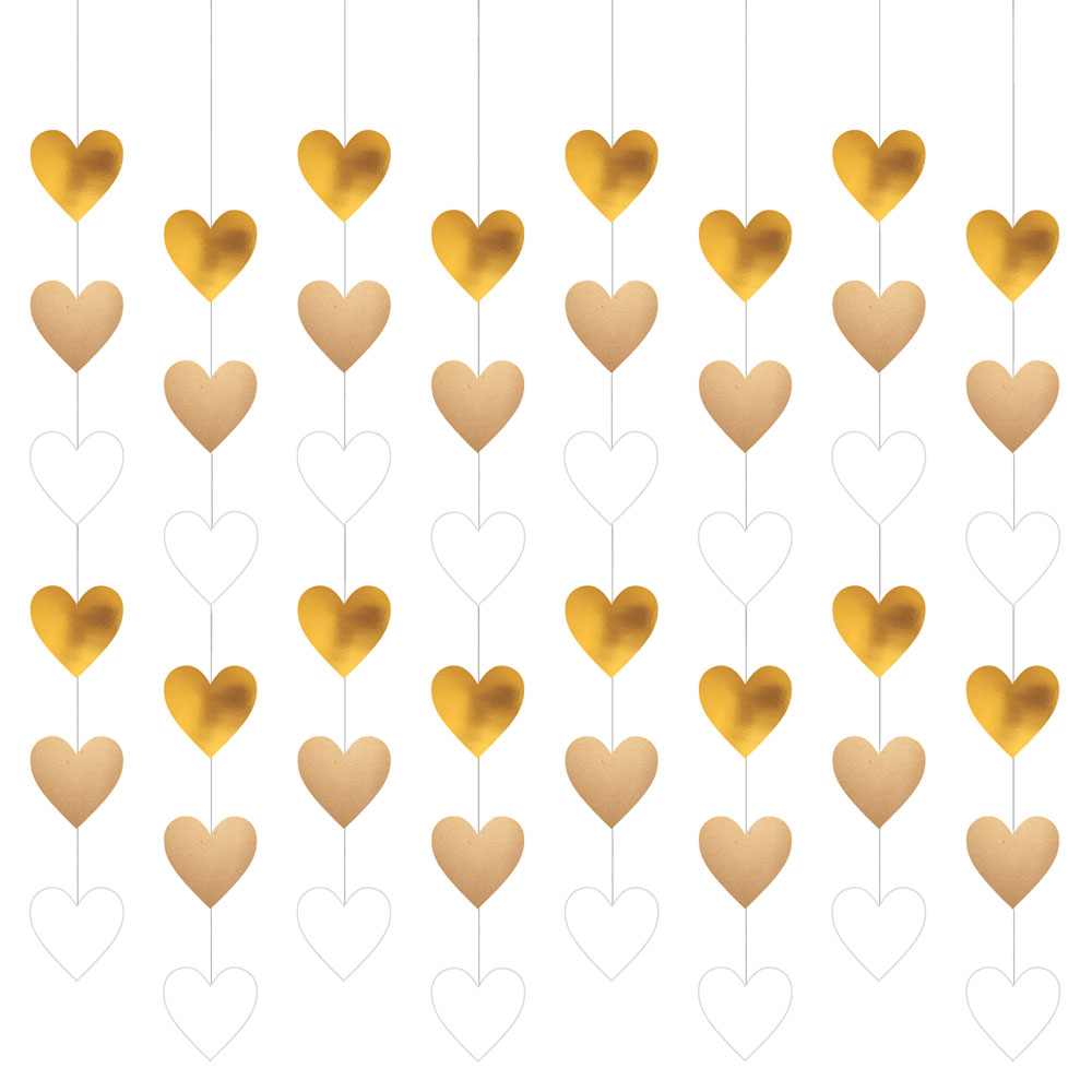 Dekorera med en fina hängande hjärtgirlang, en superfin girlang dekoration full av hjärtan i guld, vitt och brunt. Denna fina hängande dekoration kan du hänga upp mot taket eller väggen eller var du vill, ett tjusigt pynt med mycket fest känsla.
