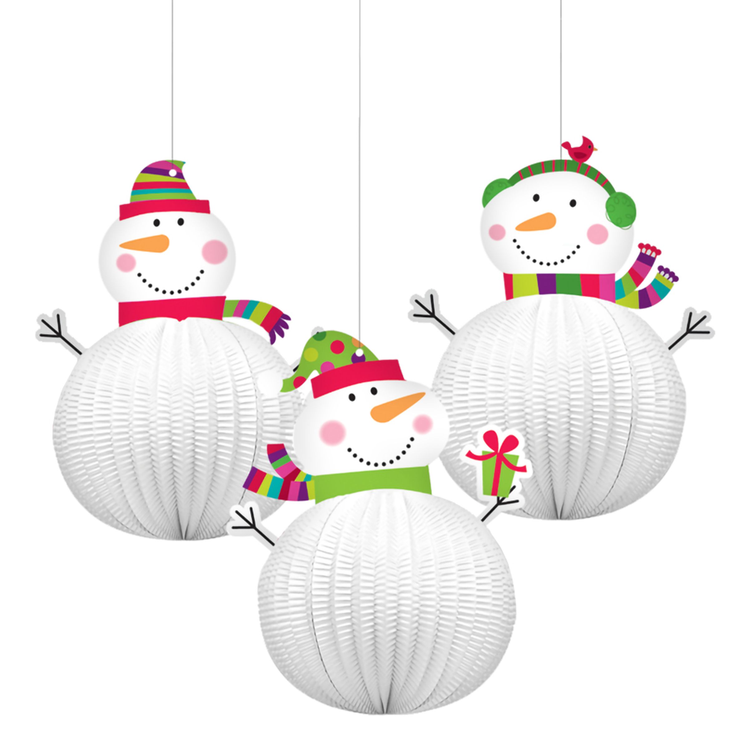 Hängande Dekorationer Snögubbar innehåller 3 stycken snögubbar i papper som samtliga mäter 20,3 cm. Mysigt pynt för att sprida lite magisk julstämning där hemma!