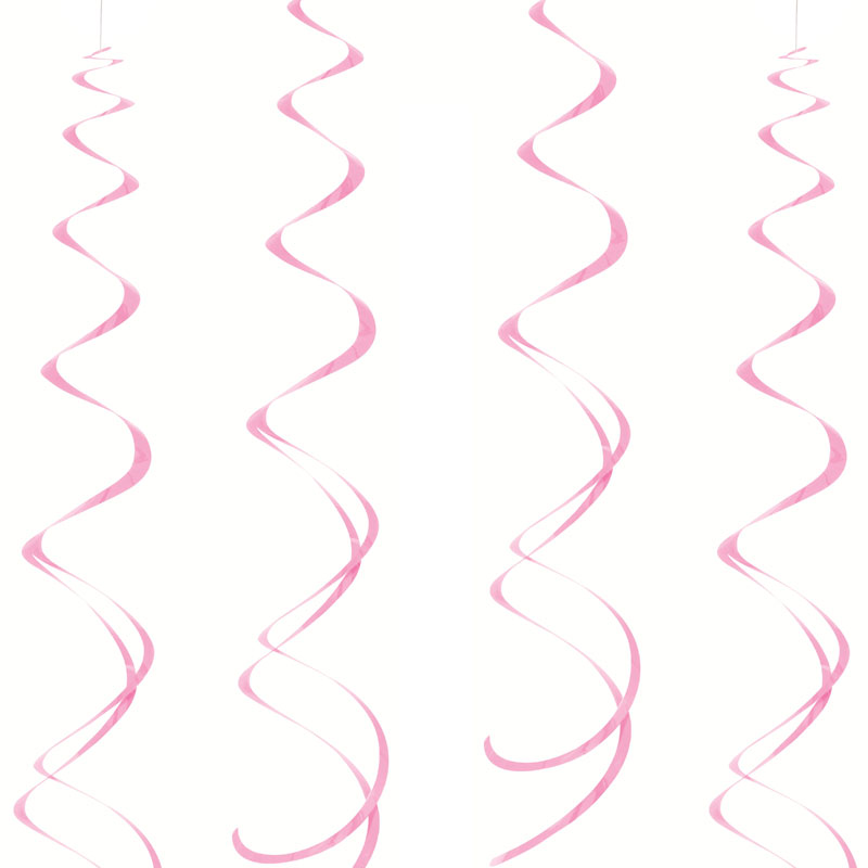Hängande Dekorationer Swirls Rosa är tillverkade av foliematerial och omfattar rosafärgade virvlar. Varje virvel delar på sig vid mittendelen för att ge effekten av att det är två virvlar som hänger ner.