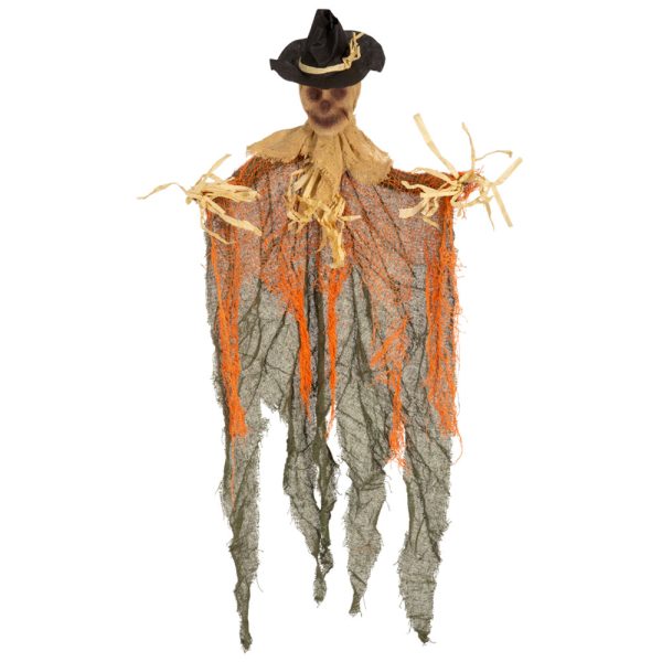 Skapa en skrämmande atmosfär för halloween med vår hängande Fågelskrämma Skelett. Denna skelett-dekoration kommer garanterat att väcka uppmärksamhet och bli en effektfull detalj i din halloween pyntning. Med sin spöklika huva och skrämmande dräkt, är den en oförglömlig halloween dekoration som kommer att skapa en otäck stämning hemma, i trädgården eller vid festen. Lägg till en extra skräckfaktor till ditt halloween pynt med denna mörka och mystiska figur.
