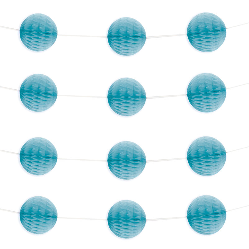 Kombinera babyblå honeycomb dekorationer med en girlang och du får ett supersött komplement som passar de allra flesta evenemang!