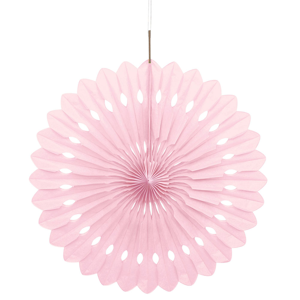 Hängande Honeycomb Solfjäder Ljusrosa innehåller en ljusrosa solfjäder honeycomb som viks ut och hängs upp i ditt hem eller i festlokalen. Dekorationen är tillverkad i papper.