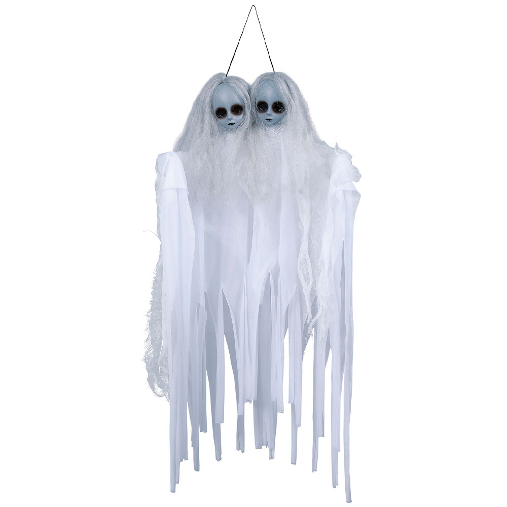 Förhöj skräckstämningen med våra hängande halloweendekorationer; ett spöke i form av siamesiska tvillingar som är perfekt för din nästa spöklika fest. Denna spökdekoration gör definitivt ett skrämmande intryck.