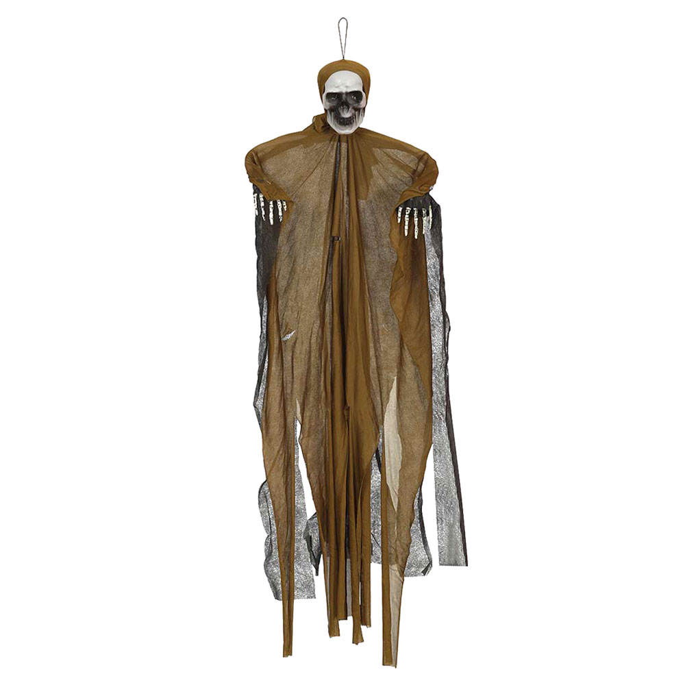 Välkomna dina Halloween gäster med en hängande och läskig skelett dekoration med grön slöja! Detta spöklika skelett blir en kuslig prydnad och ett skrämmande pynt som passar alla som vill fira Halloween med extra läbbig känsla.