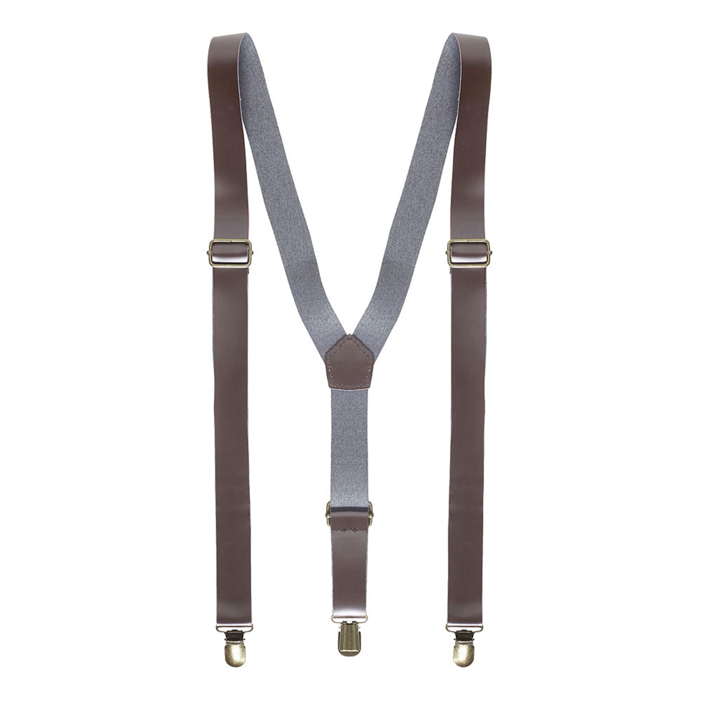 Hängslen Brun Läder har ett klassiskt utseende och ska efterlikna brunt läder. De har tre stycken fästpunkter med varsitt spänne i metall som gör att hängslena sitter bra i byxorna. De är gjorda i ett elastiskt material och kan justeras efter din egen storlek.