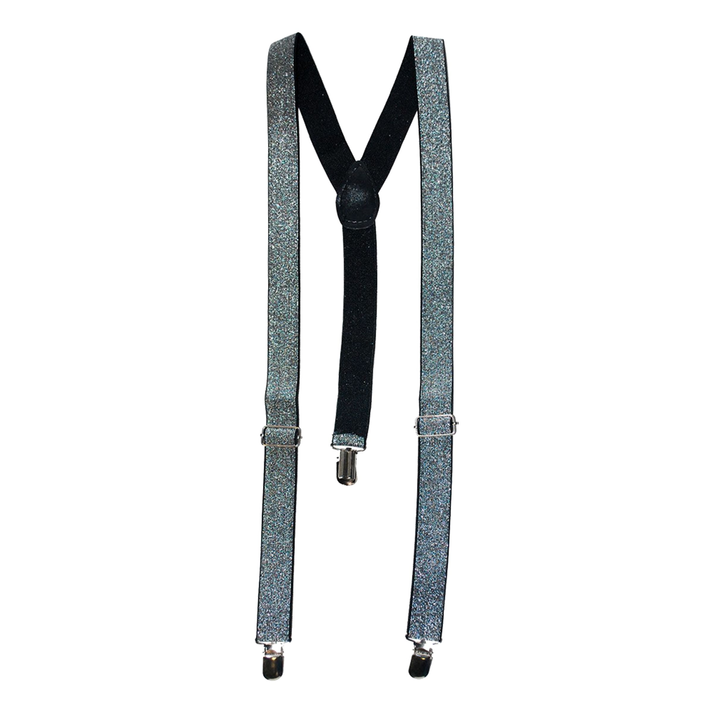 Hängslen Silverglitter innehåller silverhängseln i polyester. Kommer i storleken One size (vuxen).