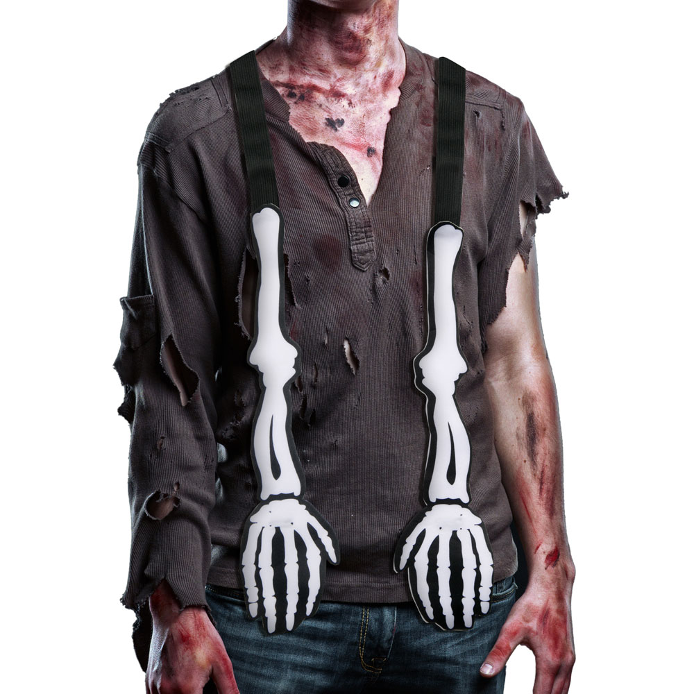 Coola skelett hängslen som passar utmärkt till Halloween fest och maskerad. Med dessa häftiga hängslen med skelett armar och stora skeletthänder får du enkelt en tuff skelett utklädnad och kostym, perfekt för dig som vill ha en cool skelett outfit på Halloween.