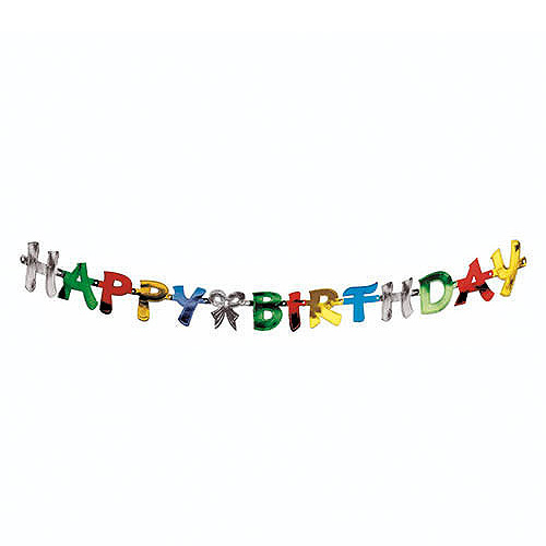 Happy Birthday Girlang omfattar en flerfärgad, glansig girlang med texten "Happy Birthday". Girlangen är tillverkad av papp och är ca 1,4 meter lång.