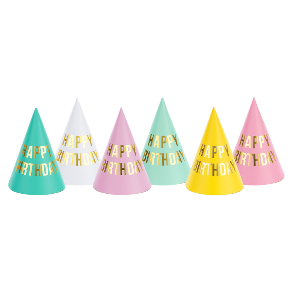 Höj partystämningen till max och få ett riktigt härligt födelsedagsfirande med dessa tjusiga partyhattar! Superfestliga kalashattar i flera fina färger och med skimrande "Happy Birthday" text framtill som utan tvekan gör alla dina gäster extra festfina. Ett utmärkt kalas tillbehör för alla som önskar ett färgglatt, och riktigt stämningsfullt födelsedagsfirande!