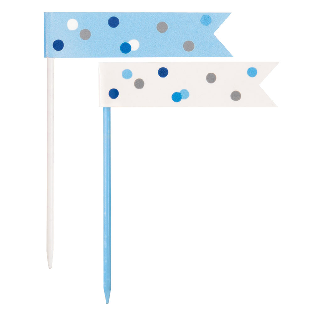 Festliga party picks med flaggor i blått och vitt, perfekt för alla som vill ha snygga party-pinnar som dekoration till cup cakes, snittar och annat gott. Dessa fina party picks fungerar även utmärkt som cocktail-pinnar för extra festlig känsla.