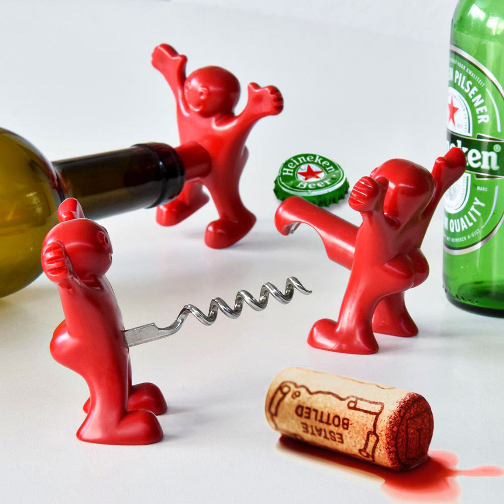 Har du rolig och lite snuskig humor är detta Happy Men set något för dig! Kit med skojiga små röda gubbar med snoppar, perfekt för dig som letar efter kul och annorlunda flasköppnare, vinpropp och korkskruv. Detta roliga set passar perfekt till party och fest, ett måste för alla som vill ha kapsylöppnare, vinpropp och och korkskruv i form av roliga gubbar med snopp.
