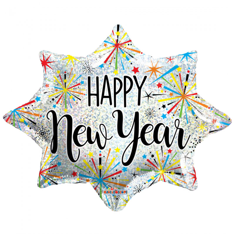 Denna happy new year ballong blir en riktigt snygg nyårs-dekoration till den stora nyårsfesten, vare sig du firar med familjen eller med vännerna! Denna nyårsballong kommer i form av ett festligt fyrverkeri, vilket gör den helt perfekt till tolvslaget. Fira in det nya året med stil och dekorera snyggt med denna storslagna nyårsballong!