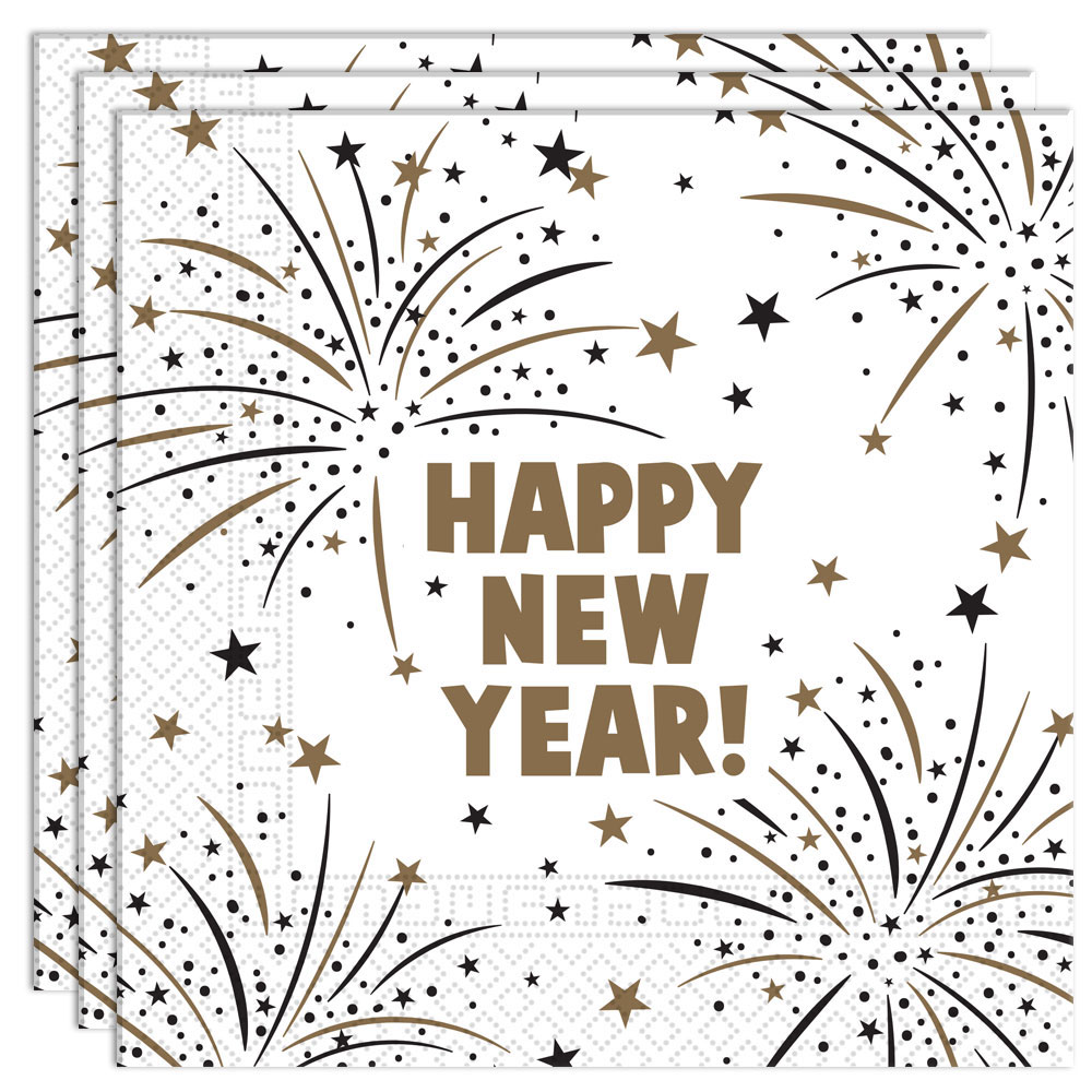 Fixa en härlig bordsdukning inför nyår med läckra servetter, perfekt festdukning och nyårsdukning för ett roligt firande. Med dessa Happy New Year pappersservetter får ni en härlig dukning som bjuder på fest och kalas stämning. Superfina nyårsservetter med festligt motiv för en riktigt fin kalasdukning.