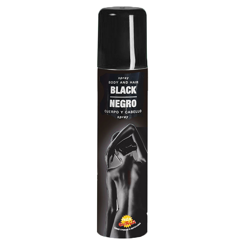 Hår- och Kroppsfärg Spray Svart omfattar en sprayburk med svart färg för kropp och hår. Färgen tvättas av med tvål och schampo.
