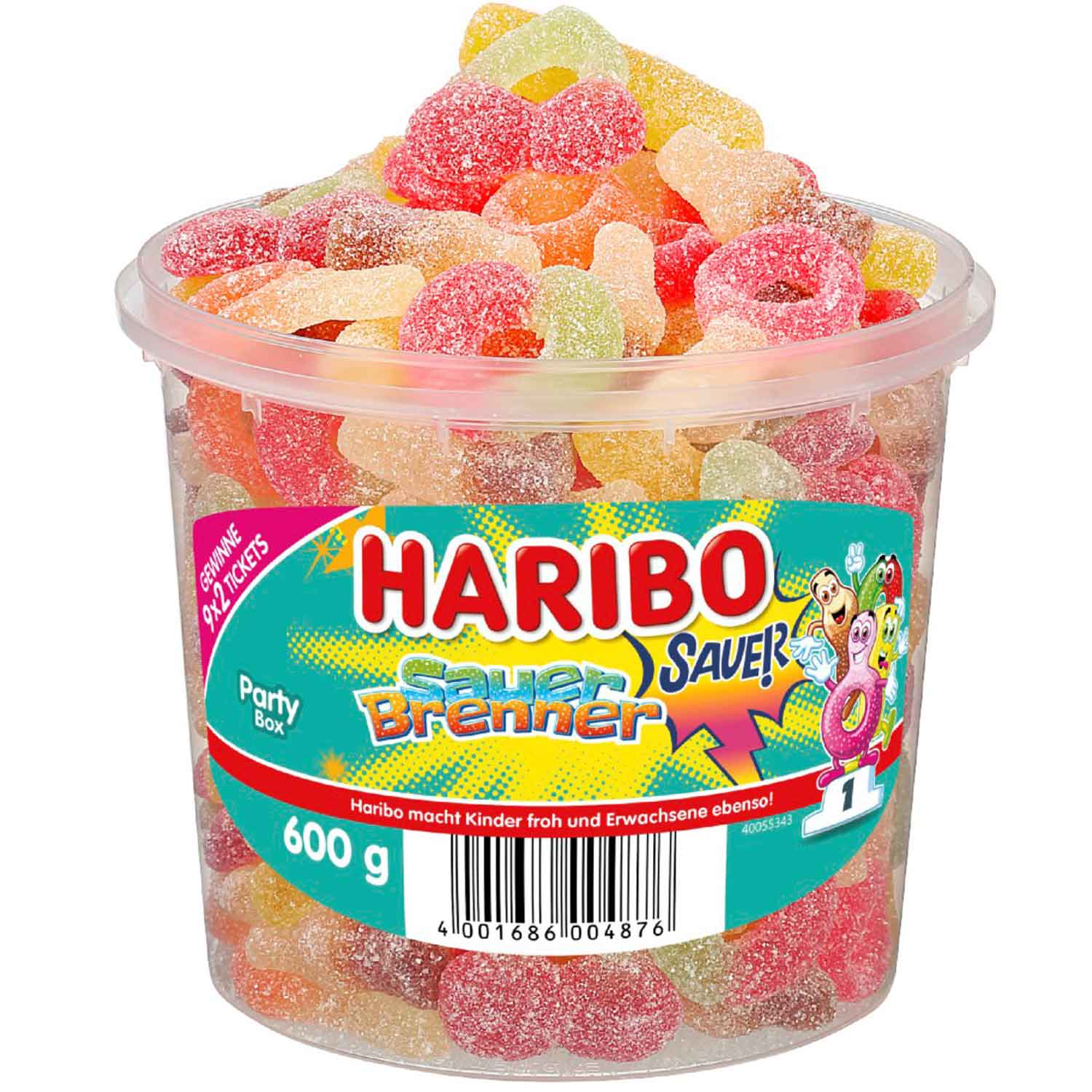 En färgglad mix av sura klassiker: äppelringar, colaflaskor, tvåfärgade nappgodis, pommes frites och körsbär. Detta är den nya Sauer Brenner i godisparadiset. Så blir surt ännu roligare!
