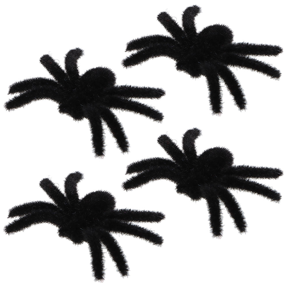 Håriga Spindlar 4-pack omfattar 4 st svarta och håriga spindeldekorationer.