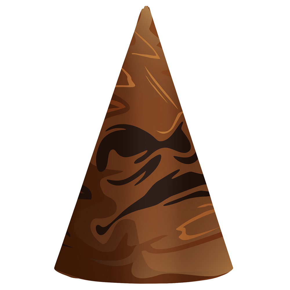 Harry Potter Houses Kalashattar omfattar åtta stycken bruna partyhattar med motiv av sorteringshatten i Harry Potter. Hålls på plats med hjälp av elastiska band.