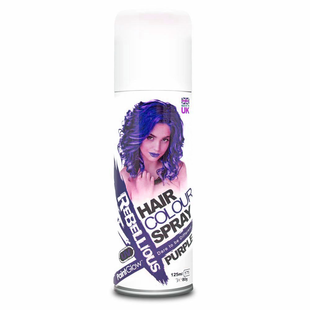 Hårspray Rebellious Lila innefattar en lila hårspray som enkelt sköljs bort med schampo.