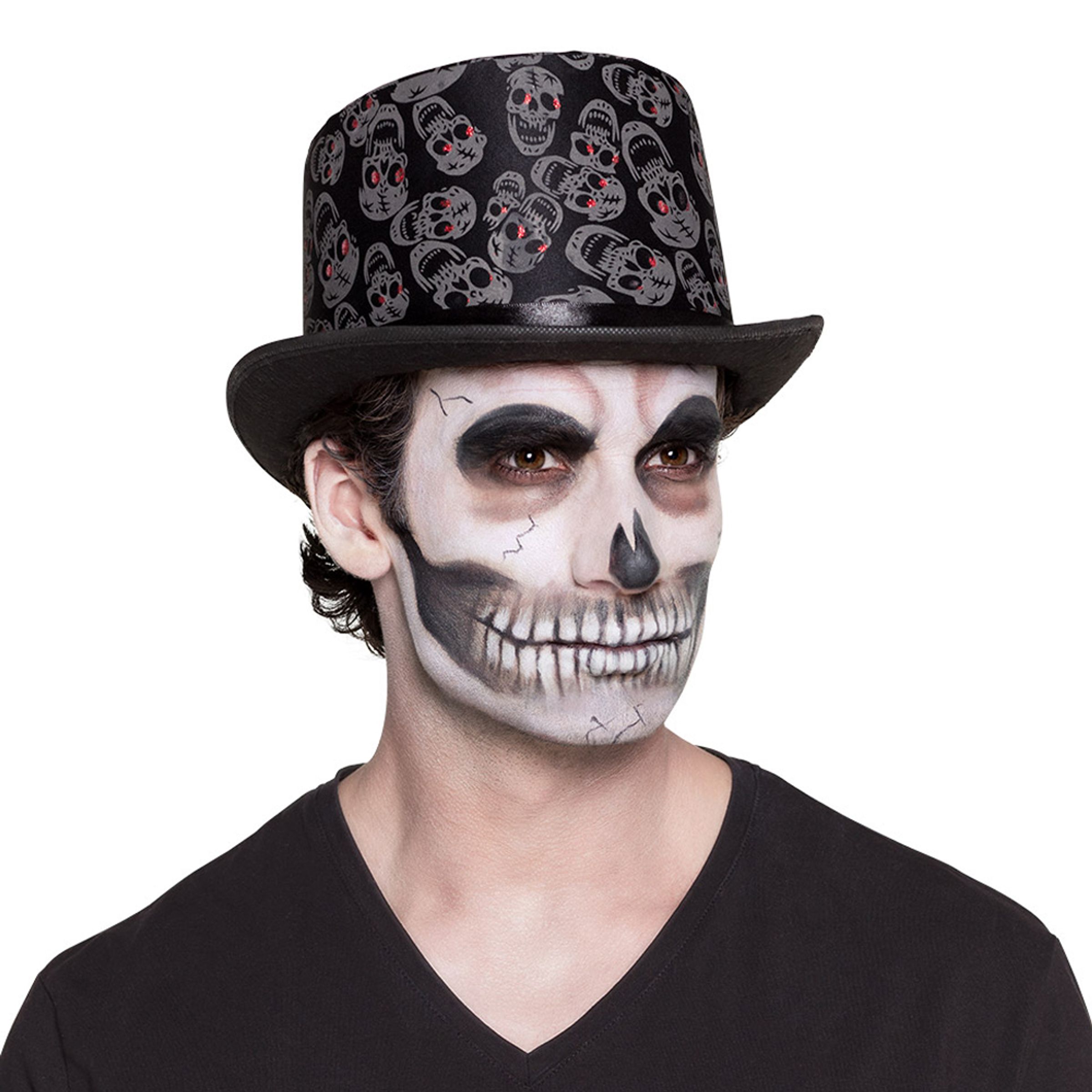 Vi anser att även dönickar ska få bära hatt, och med stolthet dessutom! Den här höga rackaren pryds av något så läskigt som gapande dödskallar och kommer klä dig alldeles utmärkt i ruskiga halloweentider.