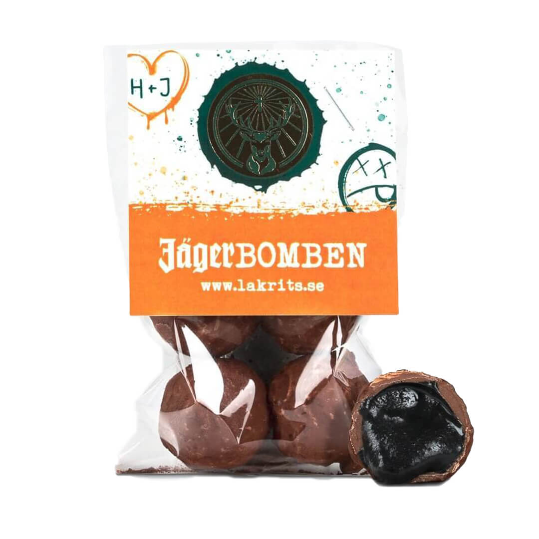 Jägerbomben är ett mästerverk, om Haupt själva får säga det. Mjuk och krämig med en fyllning av djärv saltlakrits och fyllig Jägermeisterkolakräm. Den intensiva, salta karaktären från lakritsen dansar perfekt med Jägermeisters komplexa örtsötma och subtila kryddighet. För att fullända upplevelsen har pralinen rullats varsamt i fin kakao, vilket adderar en mild bitterhet som balanserar de rika smakerna och ger en elegant avslutning.