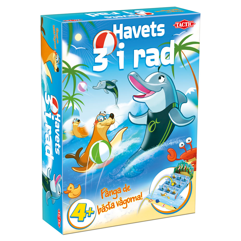Havets Tre i Rad Spel omfattar ett tre i rad spel där du ska studsa badbollarna in i vågorna för att få tre i rad, när du lyckas vinner du en flagga att sätta på ön. Laget eller spelaren som först erövrar vågorna och hissar tre flaggor på ön vinner. Spelregler medföljer.