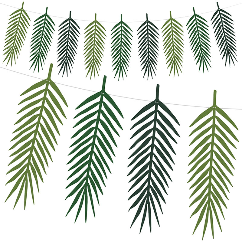 Hawaii Palm Hängande Dekoration består av en hängande dekoration i form av gröna palmblad i olika nyanser, samt en fiskelina som du sätter ihop dessa med.