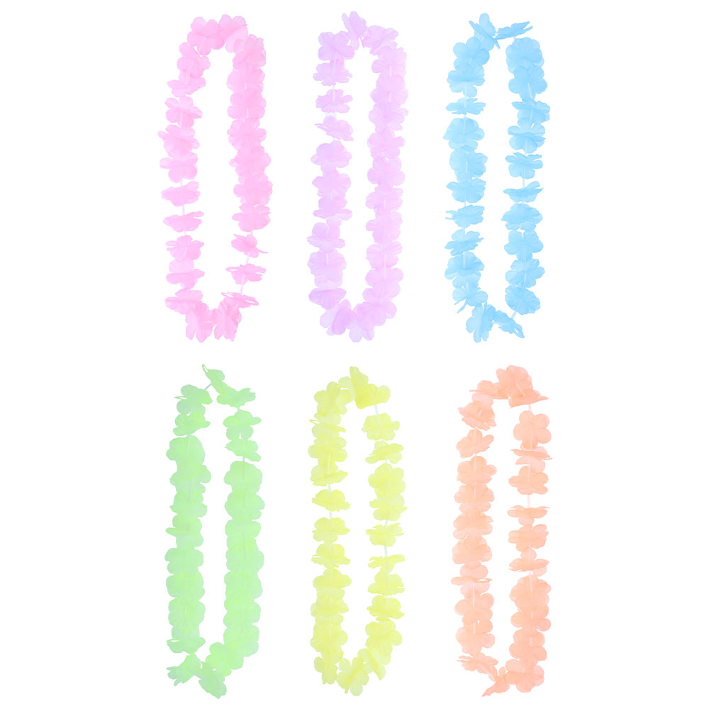 Hawaiikrans Pastell omfattar en hula lei blomsterkrans med blommor i en pastellfärgad nyans. Blomkransen finns i färgerna lila, blå, rosa, gul, grön och röd, men de säljs osorterade och styckvis så det blir en överraskning vilken färg du får.