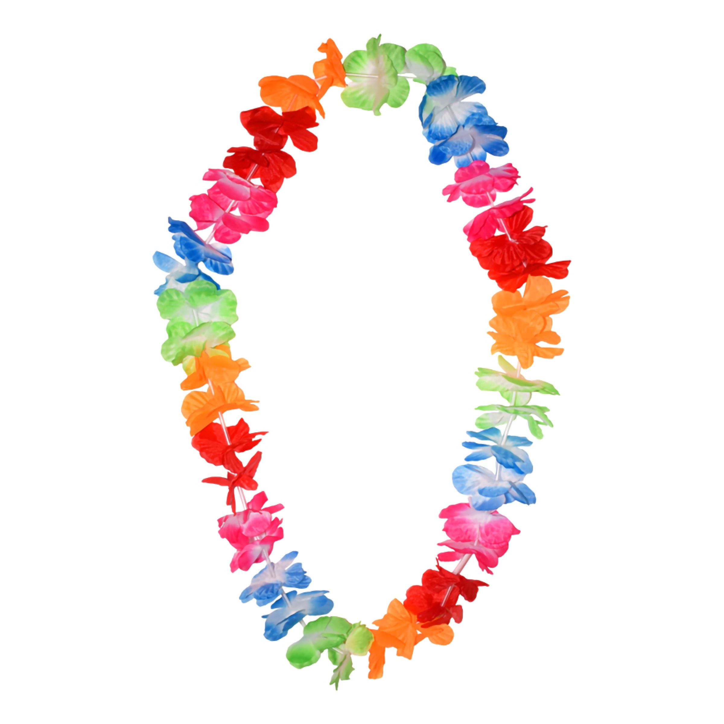 Hawaiikrans innehåller en blomsterkrans med blommor i färgglada nyanser. Bärs med fördel runt halsen och passar så väl män som kvinnor. Passar perfekt till Hawaiifesten, beachpartyt eller prideparaden!